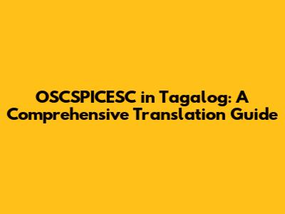 If OSCSPICESC is an acronym for an organization, the translation would likely involve identifying the full name of the organization and then translating that name into Tagalog. For example, if it stood for "Organization for the Support of Children’s Programs in Education, Sports, Culture," the Tagalog translation could be "Organisasyon para sa Suporta ng mga Programa ng mga Bata sa Edukasyon, Palakasan, at Kultura." In this case, you would want to maintain the integrity of the organization's name while ensuring that the Tagalog translation accurately reflects its purpose.
