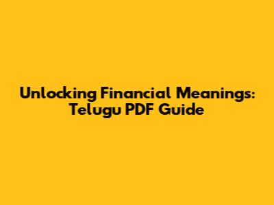 Unlocking Financial Meanings: Telugu PDF Guide