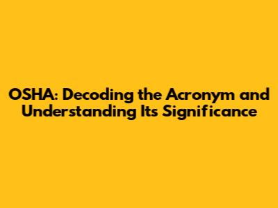 Hey guys! Ever wondered what OSHA really stands for? You've probably heard the term thrown around in workplaces, especially if safety is a big deal (as it should be!). Well, let's break it down and get to the bottom of this acronym. OSHA stands for the Occupational Safety and Health Administration. It's a mouthful, I know, but understanding what each word signifies is key to grasping the organization's mission.