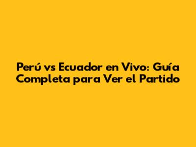 Perú Vs Ecuador En Vivo: Guía Completa Para Ver El Partido