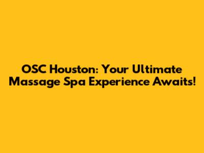 OSC Houston: Your Ultimate Massage Spa Experience Awaits!