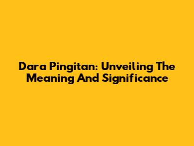 Dara Pingitan: Unveiling The Meaning And Significance