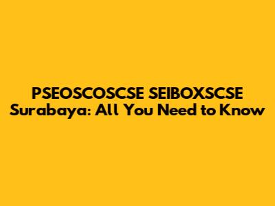 Alright, guys, let's dive into the world of PSEOSCOSCSE SEIBOXSCSE Surabaya. It sounds like a mouthful, right? But don't worry, we're going to break it down and make it super easy to understand. Whether you're a student, a professional, or just someone curious about what's happening in Surabaya, this guide is for you. We'll cover everything from what these acronyms stand for to why they matter and how they impact the local scene. So, buckle up and get ready for a comprehensive overview that's both informative and engaging!