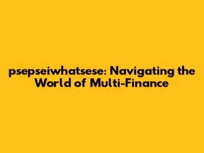 Hey guys! Ever heard of psepseiwhatsese? It's a term that's been buzzing around, especially if you're into the world of finance. But what exactly is it, and why should you care? Well, buckle up, because we're about to dive deep into the fascinating realm of multi-finance, and how psepseiwhatsese plays a crucial role. This article aims to break down the complexities, make it super easy to understand, and show you how this financial approach can work wonders for you. We’ll explore what multi-finance really means, the key players involved, and how psepseiwhatsese fits into this exciting landscape. So, whether you're a seasoned investor or just starting to dip your toes into the world of finance, get ready for a journey that could change the way you think about managing your money and growing your wealth. Let's get started!