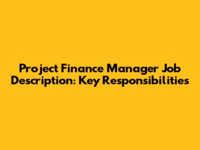 Project Finance Manager Job Description: Key Responsibilities