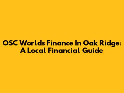 OSC World's Finance In Oak Ridge: A Local Financial Guide