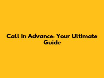 Call In Advance: Your Ultimate Guide