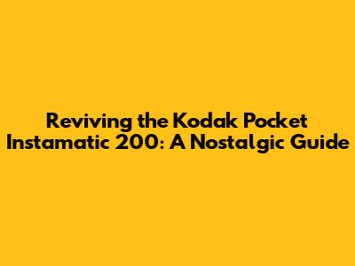 Reviving The Kodak Pocket Instamatic 200: A Nostalgic Guide