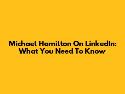 Michael Hamilton On LinkedIn: What You Need To Know