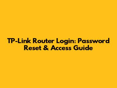 TP-Link Router Login: Password Reset & Access Guide