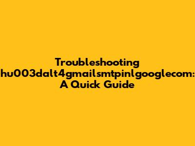 Hey guys! Ever stumbled upon a weird email address like hu003dalt4gmailsmtpinlgooglecom and wondered what it is or how to deal with it? Well, you're not alone! Let’s dive into what this strange-looking string might mean and how you can troubleshoot issues related to it. This guide will help you understand its components, potential problems, and the steps you can take to resolve them. Whether you're an email newbie or a seasoned techie, there's something here for everyone.