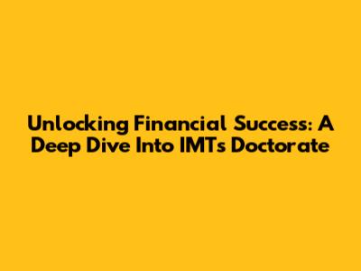 Unlocking Financial Success: A Deep Dive Into IMT's Doctorate