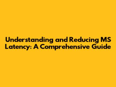 How to Reduce MS Latency