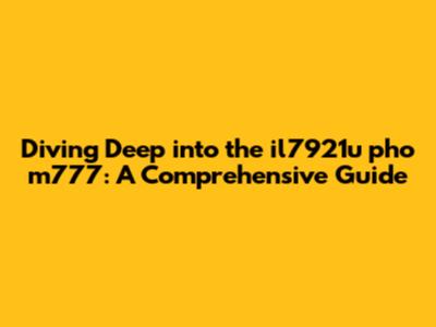 Diving Deep into the il7921u pho m777: A Comprehensive Guide