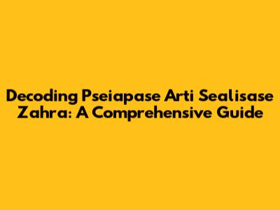 Hey guys! Ever stumbled upon "pseiapase arti sealisase zahra" and wondered what the heck it means? You're not alone! It's a phrase that, at first glance, might seem like a jumble of words. But don't worry, we're going to break it down piece by piece. This guide aims to provide a clear and comprehensive understanding of each component, revealing the overall meaning and context of "pseiapase arti sealisase zahra". Get ready to dive in and unravel this linguistic puzzle. We'll explore the possible interpretations, offer valuable insights, and help you grasp the essence of this intriguing phrase. So, buckle up; this is going to be a fun journey of linguistic discovery, and by the end, you'll be well-equipped to understand and potentially use this phrase yourself. We'll cover everything from the basic definitions to possible nuances, ensuring you have a solid grasp of what it represents. I'm excited to share this knowledge with you, so let's get started and make this journey a blast! This exploration will not only clarify the meaning but also delve into potential cultural contexts and usage scenarios, making the phrase more relatable and practical for you. Let's make this educational and engaging, making the learning process enjoyable for everyone involved.
