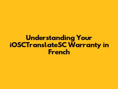 Navigating the intricacies of warranties can often feel like traversing a labyrinth, especially when dealing with technical products and services like iOSCTranslateSC. For French-speaking users, understanding the nuances of their warranty in French is crucial. This article aims to demystify the iOSCTranslateSC warranty for French speakers, ensuring you know your rights, coverage, and how to make the most of it.