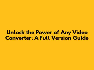 Hey guys! Ever felt like you're stuck in a digital maze, struggling to get your videos to play on the right devices? Or maybe you've got a killer video you want to share, but the format just isn't cooperating? Well, you're not alone! This is where Any Video Converter (AVC) full version steps in, acting like your trusty Swiss Army knife for all things video. This guide is your ultimate companion, diving deep into everything you need to know about the software, its awesome features, and how to get the most out of it. Get ready to transform your video experience and make those format frustrations a thing of the past! We'll cover everything from what makes AVC so special to how to grab the full version and use it like a pro. Let's jump in!