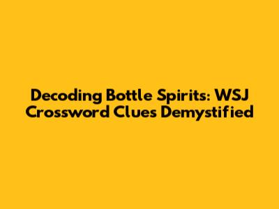 Hey crossword enthusiasts, are you ready to dive deep into the fascinating world of bottle spirits, specifically as they appear in the Wall Street Journal (WSJ) crossword puzzles? Finding clues related to alcoholic beverages can be tricky, so let's crack the code together! This guide is your ultimate resource for unraveling those perplexing clues, providing you with the knowledge and confidence to conquer even the most challenging puzzles. We'll explore various aspects, from common types of spirits to clever wordplay techniques used by puzzle creators. Get ready to enhance your solving skills and impress your friends with your newfound expertise.