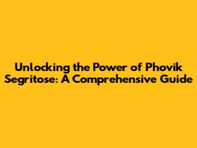 What Exactly is Phovik Segritose?