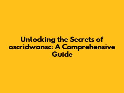 Delving into the Unknown: What Exactly is oscridwansc?