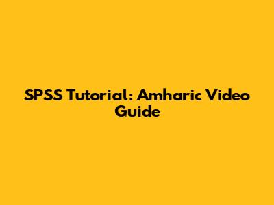 SPSS Tutorial: Amharic Video Guide