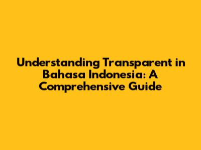 Hey guys, let's dive into the fascinating world of language, shall we? Today, we're going to explore how to say "transparent" in Bahasa Indonesia. This seemingly simple word opens up a whole universe of understanding, from describing clear glass to discussing honesty and openness. Knowing the nuances of this translation is super important, whether you're chatting with locals, reading Indonesian literature, or simply expanding your linguistic horizons. So, buckle up, and let's get started on this awesome journey to grasp "transparent" in Bahasa Indonesia!