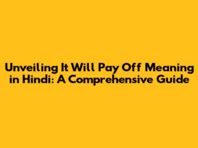 Hey there, language enthusiasts! Ever stumbled upon the phrase "it will pay off" and wondered what it truly means, especially in the context of Hindi? Well, you're in the right place! We're diving deep into the meaning of "it will pay off" in Hindi, exploring its nuances, and giving you the lowdown on how to use it like a pro. So, buckle up, grab a cup of chai (or your favorite beverage!), and let's get started. We'll break down everything, from the core meaning to real-life examples, so you can confidently use this phrase in your conversations. It's all about understanding the core meaning and how it translates into the beautiful and diverse language of Hindi.