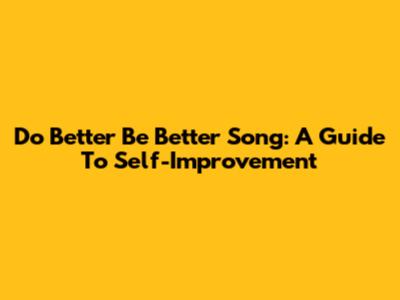 Do Better Be Better Song: A Guide To Self-Improvement