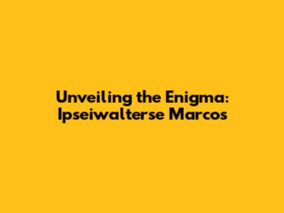 Diving into the Origins: Who is Ipseiwalterse Marcos?