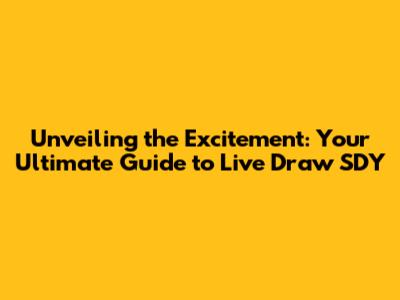 - What time is the Live Draw SDY? The draw times can vary, so it’s important to check the official schedule. Most platforms will have the exact times listed. Draw times are usually in the afternoon.