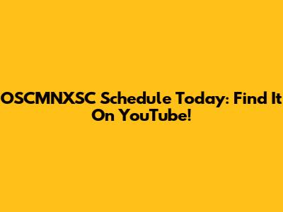 OSCMNXSC Schedule Today: Find It On YouTube!