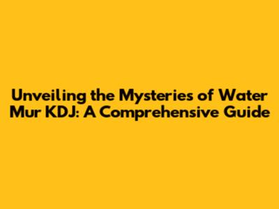 Diving Deeper: Exploring the Nuances of Water Mur KDJ