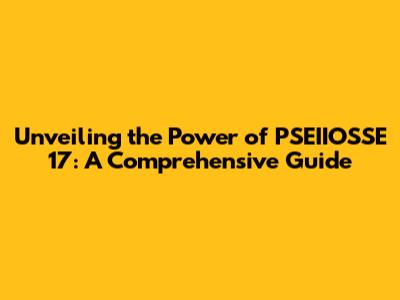 Hey there, tech enthusiasts and curious minds! Ever heard of PSEIIOSSE 17? Well, buckle up, because we're about to dive deep into what makes it tick. This isn't just a list; it's a deep dive, a comprehensive exploration of PSEIIOSSE 17, unraveling its intricacies and showing you why it's a game-changer. So, grab your favorite beverage, get comfy, and let's get started. PSEIIOSSE 17 is not merely a collection of features; it's a carefully curated ecosystem designed to revolutionize how we interact with technology. This comprehensive guide will illuminate its functionalities, significance, and potential impact. We'll explore the core components, their interrelations, and the benefits they offer to users and developers. From the foundational principles to the practical applications, we'll traverse the entire landscape of PSEIIOSSE 17. Whether you're a seasoned tech guru or just starting your journey into the digital world, this guide is designed to provide you with a clear, concise, and engaging understanding. We'll break down complex concepts into digestible pieces, ensuring that everyone can grasp the essence of PSEIIOSSE 17. This introduction serves as a roadmap, guiding you through the essential aspects of this powerful system. So, stick around, and let's decode the magic of PSEIIOSSE 17 together.