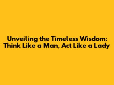 Unveiling The Timeless Wisdom: Think Like A Man, Act Like A Lady