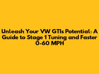 What's up, car enthusiasts! Today, we're diving deep into something super exciting: optimizing your VW GTI for a Stage 1 tune and how that dramatically impacts your 0-60 MPH times. If you're rocking a GTI and thinking about giving it a little extra pep, you've come to the right place. We're going to break down what a Stage 1 tune actually is, why it's the go-to for so many GTI owners, and how it translates into that thrilling surge of acceleration you crave. Get ready to understand how to unlock more power, torque, and that sweet, sweet speed.