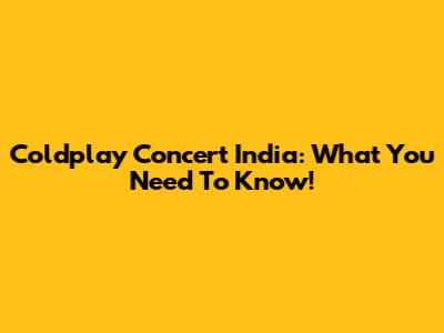 Coldplay Concert India: What You Need To Know!