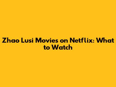 Zhao Lusi Movies On Netflix: What To Watch